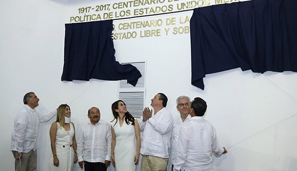 Y es que el mandatario estatal, asistió al recinto legislativo acompañado del presidente del Tribunal Superior de Justicia (TSJ), Enrique Priego Oropeza, con quien develó la frase en letras doradas, al lado de la presidenta de la Junta de Coordinación Política del Congreso del Estado, Beatriz Milland Pérez, y los diputados Odette Carolina Lastra García, Gerald Washington Herrera Castellanos y Agustín Silva Vidal.