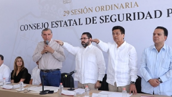 En la reunión efectuada en Palacio de Gobierno, el jefe del Ejecutivo tomó protesta a Ángel Mario Balcázar Martínez, secretario de Seguridad y Protección Ciudadana (SSPC), y a Luis Arcadio Gutiérrez León, secretario Ejecutivo del Sistema Estatal de Seguridad Pública (SESESP), como nuevos integrantes del Consejo.