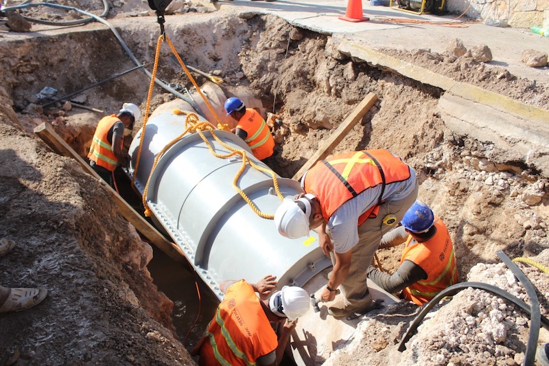 Mérida, Yucatán, 10 de marzo de 2020.- Con éxito, la Junta de Agua Potable y Alcantarillado de Yucatán (Japay) reparó la fuga en una tubería de 30 pulgadas del cárcamo de San Sebastián, con lo que se evita desperdicios del líquido, mejora la eficiencia en la distribución y continúa la estrategia de recuperación de caudales, todas indicaciones del Gobernador Mauricio Vila Dosal.