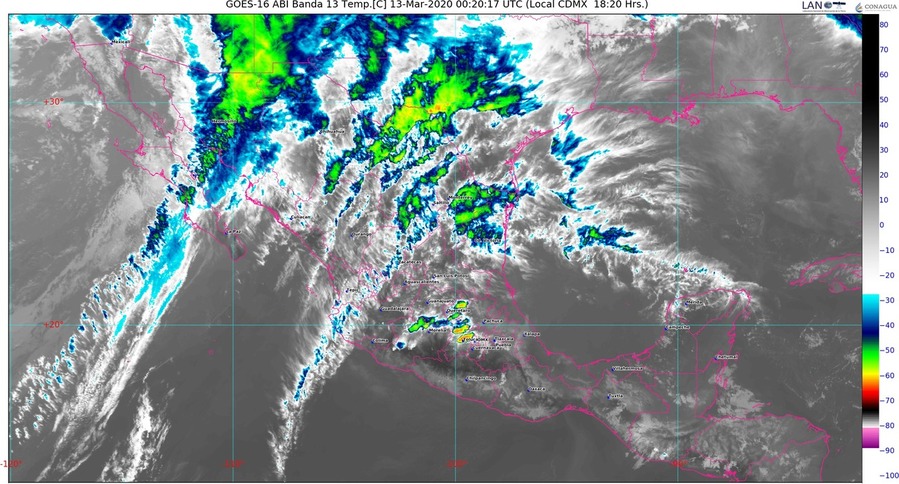 Un canal de baja presión incrementará la probabilidad de chubascos vespertinos con descargas eléctricas en la Ciudad de México, Chiapas, Colima, Estado de México, Guanajuato, Jalisco, Michoacán y Querétaro, y aisladas en Guerrero, Oaxaca y Veracruz.