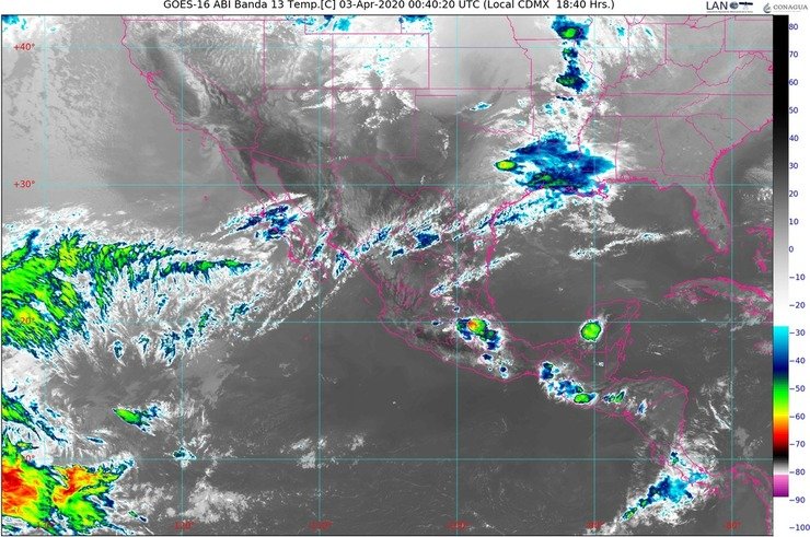 Se prevén, durante la mañana, temperaturas mínimas de -5 a 0 grados Celsius en sierras de Baja California, Chihuahua y Durango; en la tarde, máximas de 40 a 45 grados Celsius en Campeche, Chiapas, Guerrero, Michoacán, el sur de Morelos, Nayarit, Oaxaca, el suroeste de Puebla, Tabasco, Veracruz y Yucatán, y de 35 a 40 grados Celsius en Colima, el suroeste de Chihuahua, Guanajuato, Hidalgo, Jalisco, Querétaro, Quintana Roo, San Luis Potosí, Sinaloa y Tamaulipas.