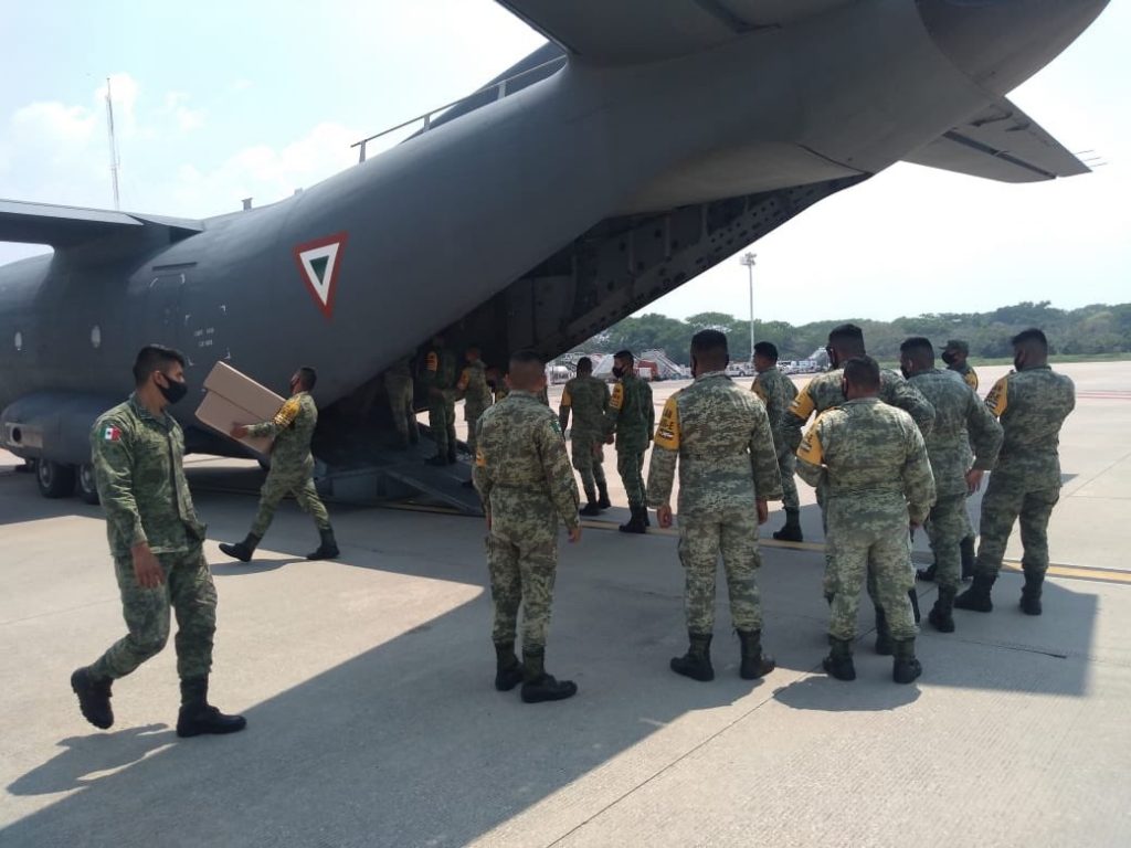Villahemosa, Tabasco a 03 de mayo de 2020.- El gobernador Adán Augusto López Hernández informó que llegó a Tabasco un avión de la Secretaría de la Defensa Nacional (Sedena) que transportaba insumos médicos para la atención del Covid-19.