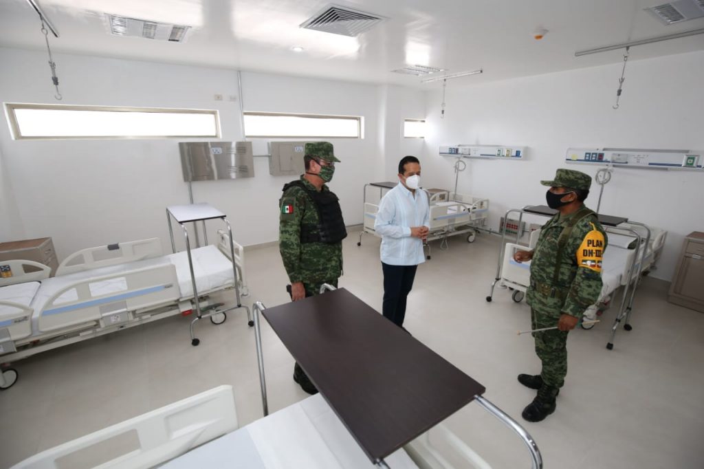 El teniente coronel de infantería Zepeda Cruz explicó que dicho nosocomio cuenta con 20 camas para hospitalización y 25 para cuidados intensivos, 21 médicos, 33 enfermeras, nueve afanadores y siete secretarios, que atenderán exclusivamente a pacientes con covid-19.