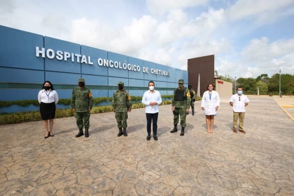 El gobernador de Quintana Roo visitó a temprana hora el Hospital de Especialidades Oncológicas de la capital del estado, acompañado por el general de brigada José Luis Vázquez Araiza, comandante de la 34 Zona Militar, y el director del nosocomio, el teniente coronel de infantería Antonio Enrique Zepeda Cruz.