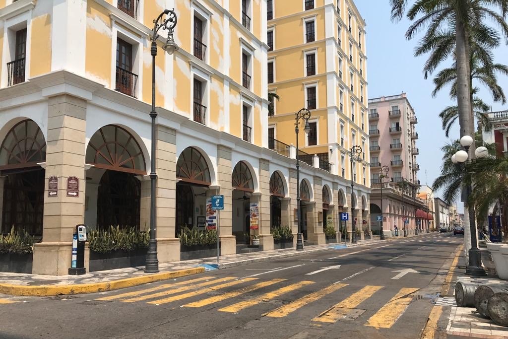 Veracruz, Veracruz a 16 de mayo de 2020.- Este sábado 16 de mayo, las calles del Centro Histórico de la ciudad de Veracruz lucen vacías, sin tráfico vehícular y con una mínima afluencia de personas caminando por la contingencia sanitaria por el COVID-19.