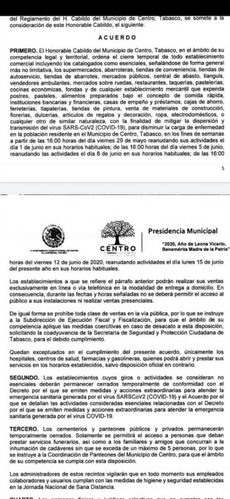 Y es que de acuerdo al documento que circula en redes sociales, se propone que el cierre de comercios sea a partir de las 16:00 horas del día viernes 29 de mayo, reanudando sus actividades el día lunes 1 de junio en sus horarios habituales; de las 16:00 horas del día viernes 5 de junio reanudando sus actividades el día lunes 8 de junio en sus horarios habituales y de las 16:00 horas del viernes 12 de junio reanudando actividades el día lunes 15 de junio del presente año en sus horarios habituales.