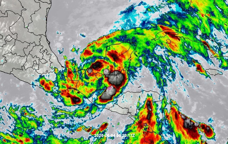 Mérida, Yucatán a 03 de junio de 2020.- Desde la mañana de hoy, la tormenta tropical “Cristóbal” tocó tierra en la península y se prevé que continúe afectando la región en los que resta de la semana con lluvias torrenciales y vientos fuertes. La actualización de su pronóstico de trayectoria indica que pasaría muy cerca de la ciudad de Mérida.