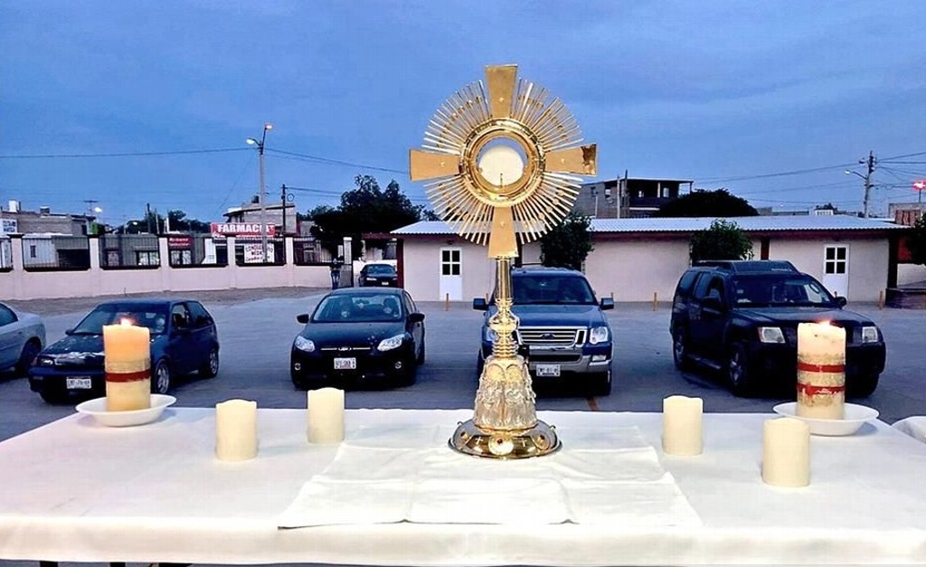 El sacerdote decidió celebrar todos los jueves la Hora Santa en el estacionamiento de la parroquia, con unos 40 vehículos, los cuales reciben la bendición con el Santísimo Sacramento