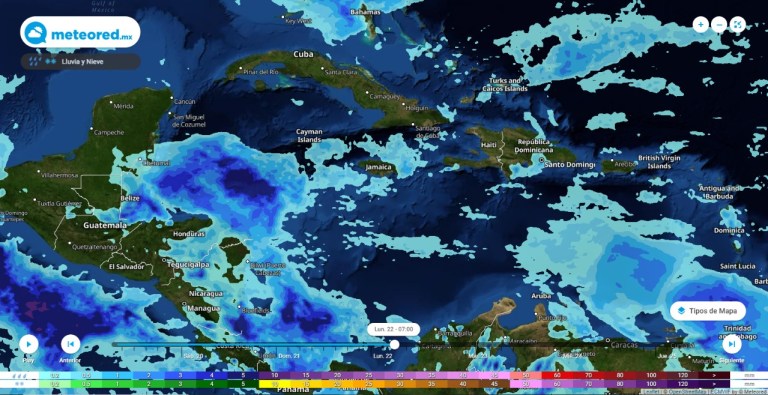 Para el Miércoles otra onda tropical debe llegar acompañada de un cúmulo de Polvo del Sahara, lo que podría hacer que no descargue mucha precipitación.