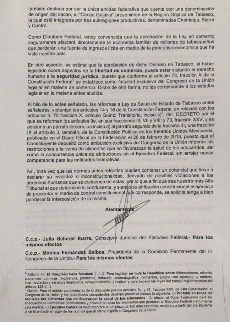 Ciudad de México a 25 de agosto de 2020.- La diputada federal del Partido Revolucionario Institucional (PRI), Soraya Pérez Munguía, dio a conocer que presentó un oficio ante la Comisión Nacional de los Derechos Humanos (CNDH) para que interponga ante la Suprema Corte de Justicia de la Nación (SCJN) una acción de inconstitucionalidad por la Ley ‘Antichatarra’ promulgada en Tabasco.