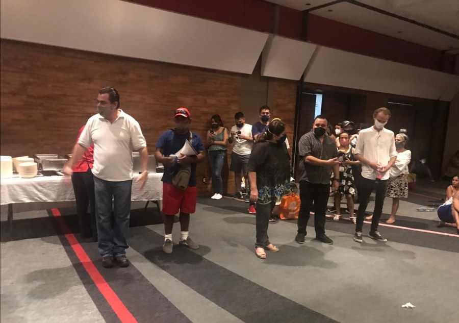 Cancun, Quintana Roo a 05 de octubre de 2020.- El centro de convenciones de Cancún quedó habilitado como refugio para residentes y turistas de la zona hotelera, ante la llegada del huracán “Delta” a las costas de Quintana Roo, con capacidad para albergar a mil 400 personas en los más de 4 mil metros cuadrados que tiene el edificio.