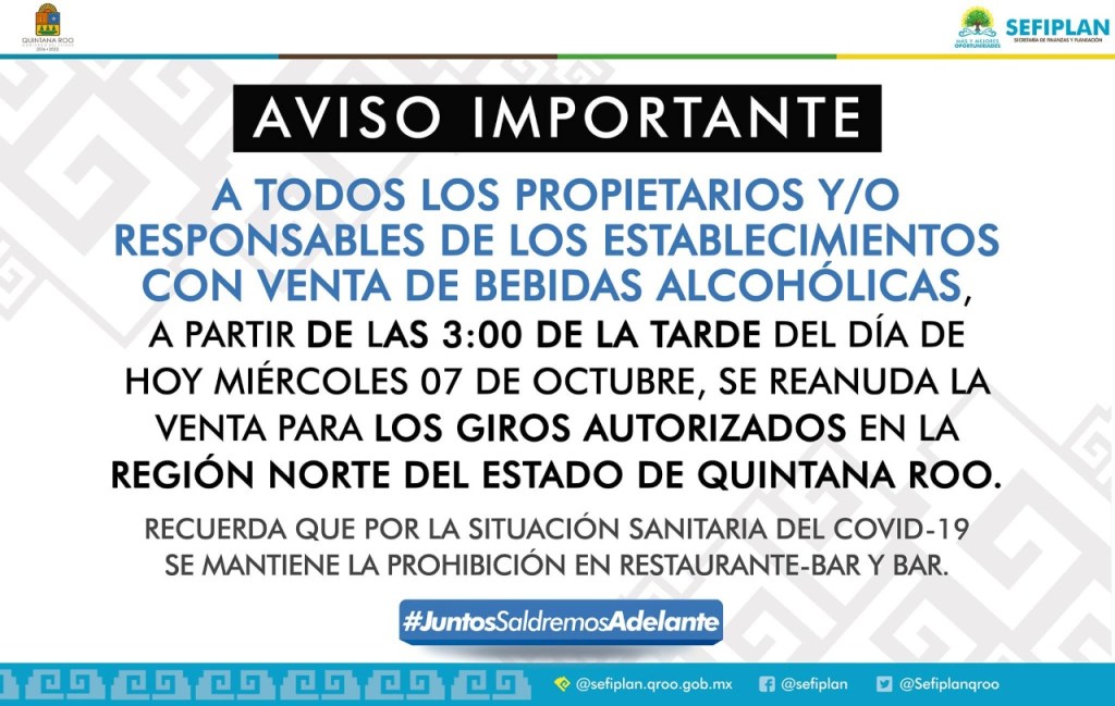 Chetumal, Quintana Roo a 07 de octubre de 2020.- Desde las 15 horas de este miércoles, los establecimientos autorizados comenzaron a vender nuevamente bebidas alcohólicas luego que el gobierno del Estado, a través de la Secretaría de Finanzas, levantara la ley seca que se implementó con motivo del huracán Delta y se ordenara el reinicio de actividades laborales para los habitantes de los municipios del norte de la entidad al declararse alerta amarilla por el alejamiento del fenómeno.