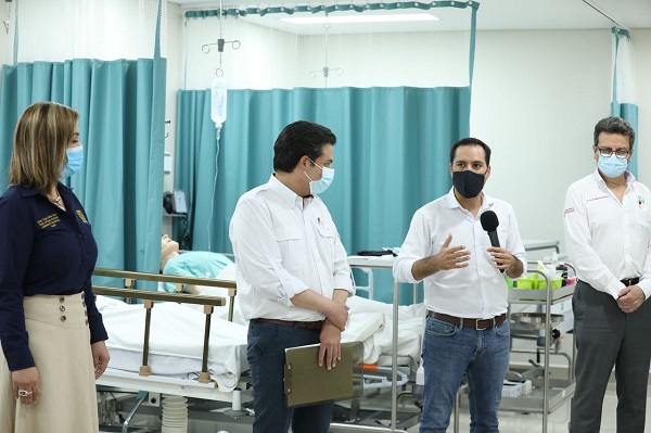 De igual manera, el Gobernador y Robledo Aburto realizaron una gira de trabajo que contempló la supervisión del hospital temporal del Centro de Convenciones Yucatán Siglo XXI y la construcción de la Unidad de Medicina Familiar en el fraccionamiento “Los Héroes”; así como la inauguración del Centro de Simulación y Excelencia Clínica Quirúrgica