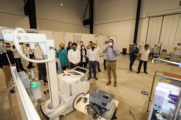 En el hospital temporal, el Gobernador y el director general del IMSS recorrieron las áreas por las que está conformado y constataron los modernos equipos con los que se cuenta en estas instalaciones para garantizar una atención de calidad a los pacientes con Coronavirus y contribuir a aliviar la ocupación hospitalaria del estado.