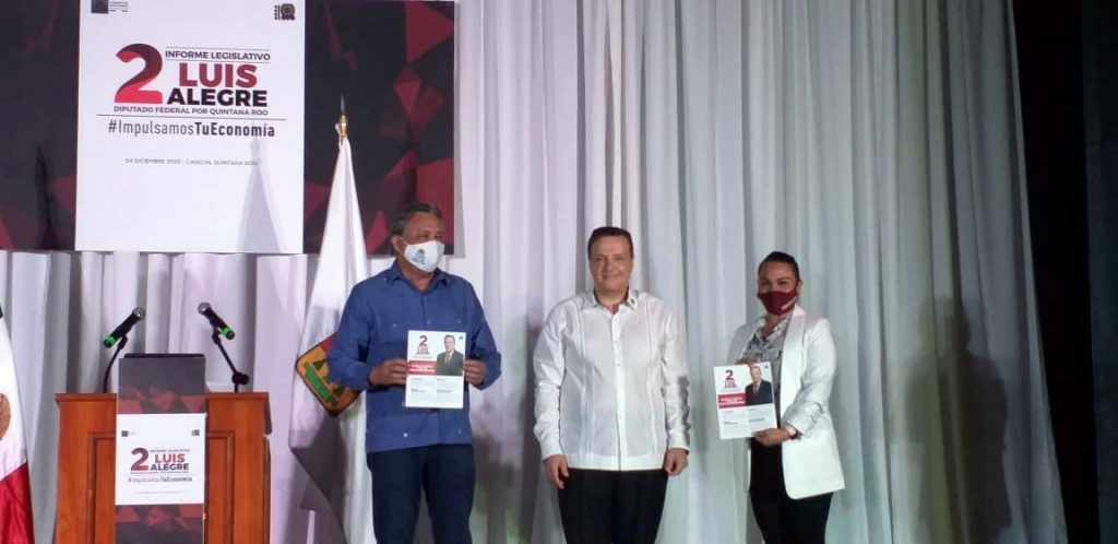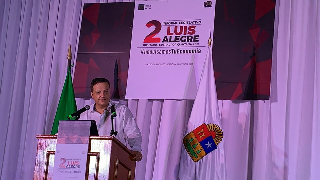 Cancún Quintana Roo a 4 de diciembre de 2020.- El diputado federal por Quintana Roo y presidente de la Comisión de Turismo del Congreso de la Unión, Luis Alegre Salazar, rindió su segundo informe de actividades legislativas en el auditorio de la Universidad Tec Milenio.