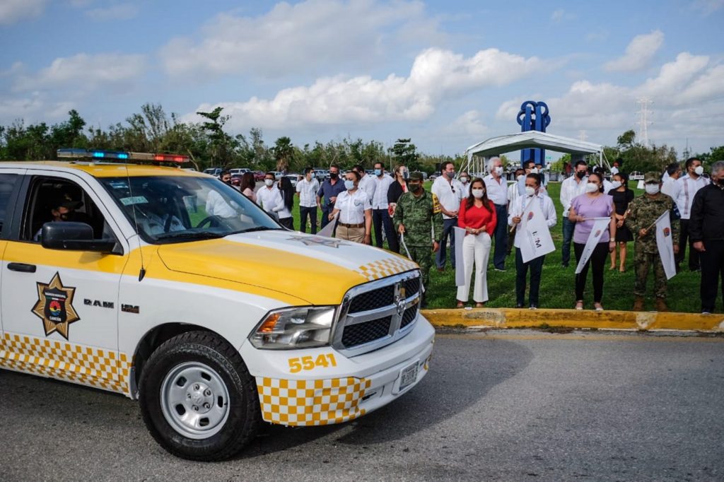 Durante el evento, encabezado por el gobernador Carlos Joaquín González, la Presidente Municipal, Mara Lezama, puntualizó que el Ayuntamiento de Benito Juárez se suma con un despliegue de personal y parque vehicular para reforzar los recorridos y acciones de prevención que inhiban el delito.