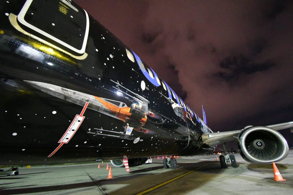 “Para los fans de Star Wars le compartó estas imágenes de uno de los aviones de United brandeados con esta serie”, indica la funcionaria.