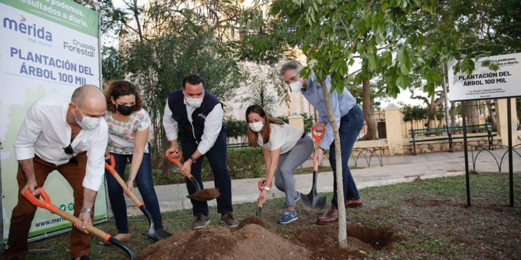 Recordó que se logró alcanzar la meta de 100,000 árboles plantados gracias a las jornadas en espacios públicos, a las cruzadas forestales, así como al programa “Adopta un árbol” y otras acciones como el Programa de Estacionamiento y Pisos Urbanos, en la Universidad Modelo, Cementerio Xoclán y Parque de Deportes Extremos.