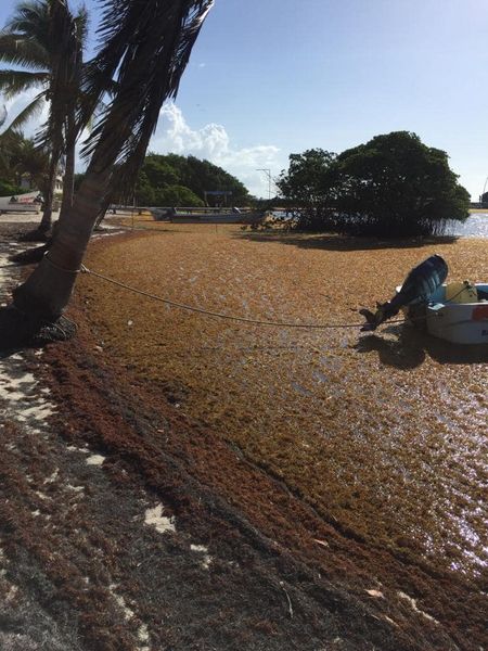 Dijo: “Hay bastante, está recalando bastante ahorita, las playas están hasta el tope de sargazo y para poder sacar todo eso se necesita maquinaria especial”.