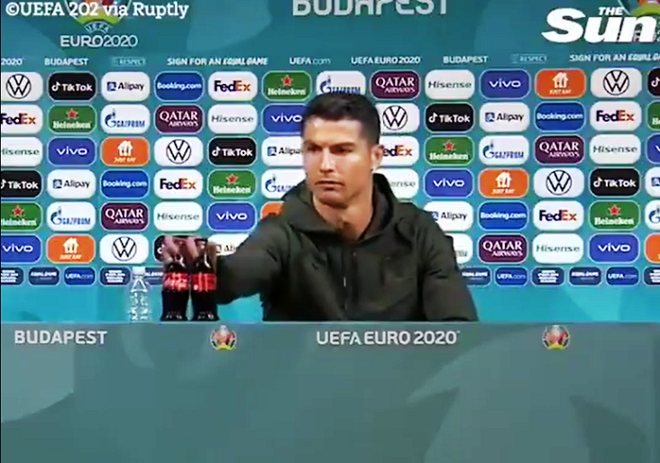 Las imágenes le dieron vuelta al mundo y hoy las repercusiones financieras contra la empresa refresquera son de pérdidas millonarias por ese simple gesto del considerado mejor goleador de Europa.