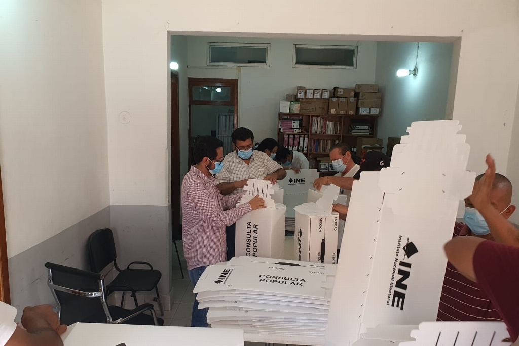 Villahermosa, Tabasco a 18 de julio de 2021.-Al menos ocho toneladas de material electoral llegaron a Tabasco este domingo para la realización de la Consulta Popular del próximo 1 de agosto, a cargo del Instituto Nacional Electoral (INE), para lo que se instalarán mil 53 mesas receptoras en todo el estado.