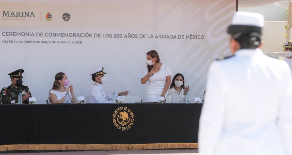 La Presidenta Municipal Mara Lezama atestiguó el evento encabezado por el vicealmirante Marcos Hernández Gutiérrez, Jefe de estado mayor de la Quinta Región Naval, quien replicó el mensaje del Secretario de la Marina Nacional, José Rafael Ojeda Duran, como reconocimiento a dos siglos de trabajo apegados a los valores nacionales en entrega y solidaridad en la edificación de la sociedad.