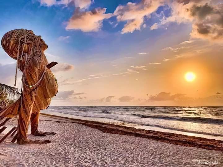Tulum, Quintana Roo, a 12 de octibre de 2021.- La popular escultura “Ven a la luz” del artista Daniel Popper, ubicada en el hotel Ahau y que se convirtió en un atractivo de Tulum, ahora será exhibida en otro punto junto a varias esculturas más en lo que será un espacio dedicado a la exhibición.