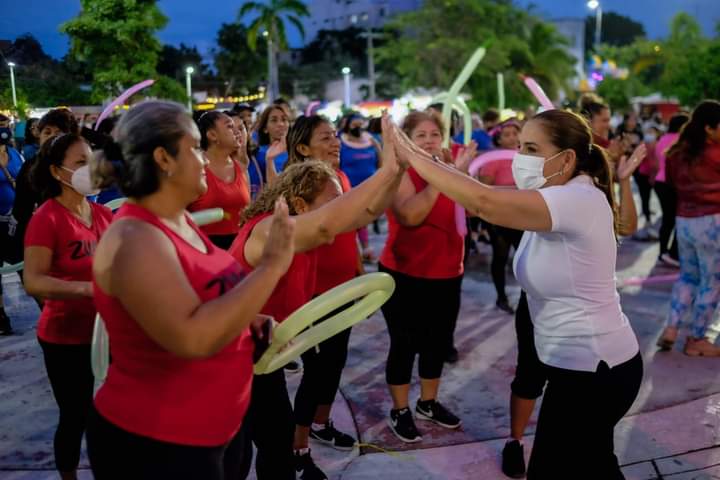 Al encabezar una “Máster Class” de baile deportivo en la explanada del Parque de Las Palapas, la Presidente Municipal Mara Lezama Espinosa comentó la importancia de mantener buenos hábitos y cuidar la salud.