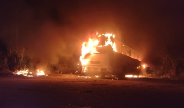 Octapan, Veracruz a 06 de diciembre de 2021.-La noche de este lunes fue asaltado un autobús de pasajeros de la línea Sotavento y posteriormente quemado por los delincuentes en Oteapan, al sur de Veracruz.
