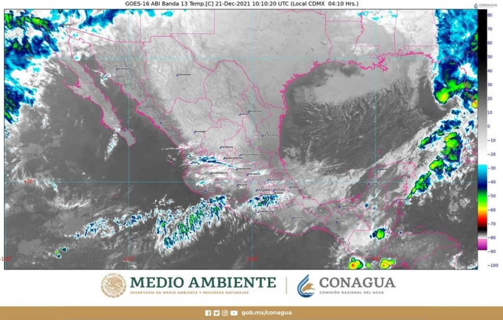 Durante la mañana, las temperaturas mínimas oscilarán entre -10 y -5 grados Celsius en zonas montañosas de Chihuahua y Durango; de -5 a 0 grados Celsius en zonas montañosas de Coahuila, Estado de México, Guanajuato, Hidalgo, Nuevo León, Puebla, San Luis Potosí, Sonora, Tlaxcala y Zacatecas, y de 0 a 5 grados Celsius en zonas montañosas de Aguascalientes, Baja California, Ciudad de México, Jalisco, Michoacán, Oaxaca, Querétaro, Tamaulipas y Veracruz.