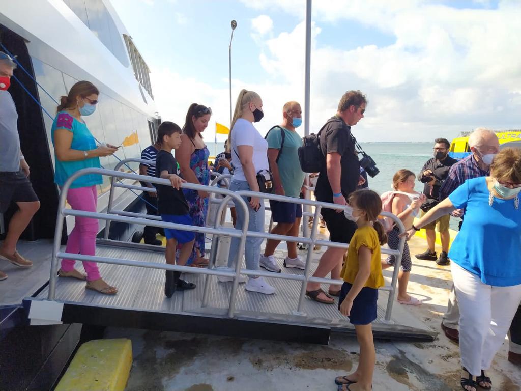 Luego de su llegada a la terminal marítima de Isla Mujeres, las autoridades locales y ejecutivos de Grupo Xcaret visitaron la taquilla de la empresa.