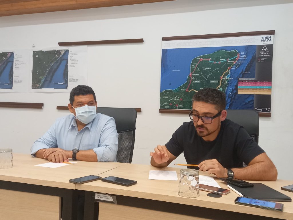 Cancún, Quintana Roo,a 19 de enero de 2022.- El nuevo director general del Fondo Nacional de Fomento al Turismo (FONATUR), Javier May Rodriguez, informó que los trabajos del Tren Maya realizados en el centro de Playa del Carmen han quedado suspendidos en virtud de la ruta ya no pasará por la zona urbana, ante la afectación que generaba al tráfico vehicular, por ello en los próximos días se dará a conocer detalles del proyecto definitivo que seguirá el tramo 5 (Cancún-Tulum).