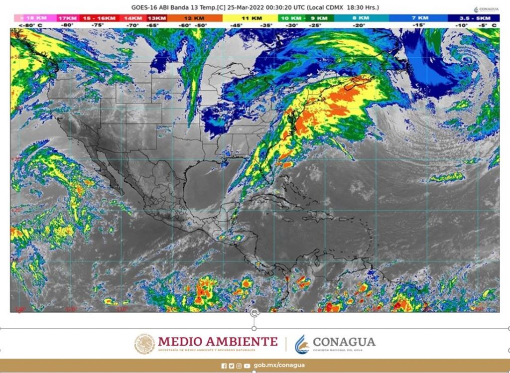 Adicionalmente, se pronostican intervalos de chubascos (de 5 a 25 mm) en sitios de Quintana Roo, así como lluvias aisladas (de 0.1 a 5 mm) en zonas de Campeche, Chiapas, Oaxaca, Tabasco y Veracruz.
