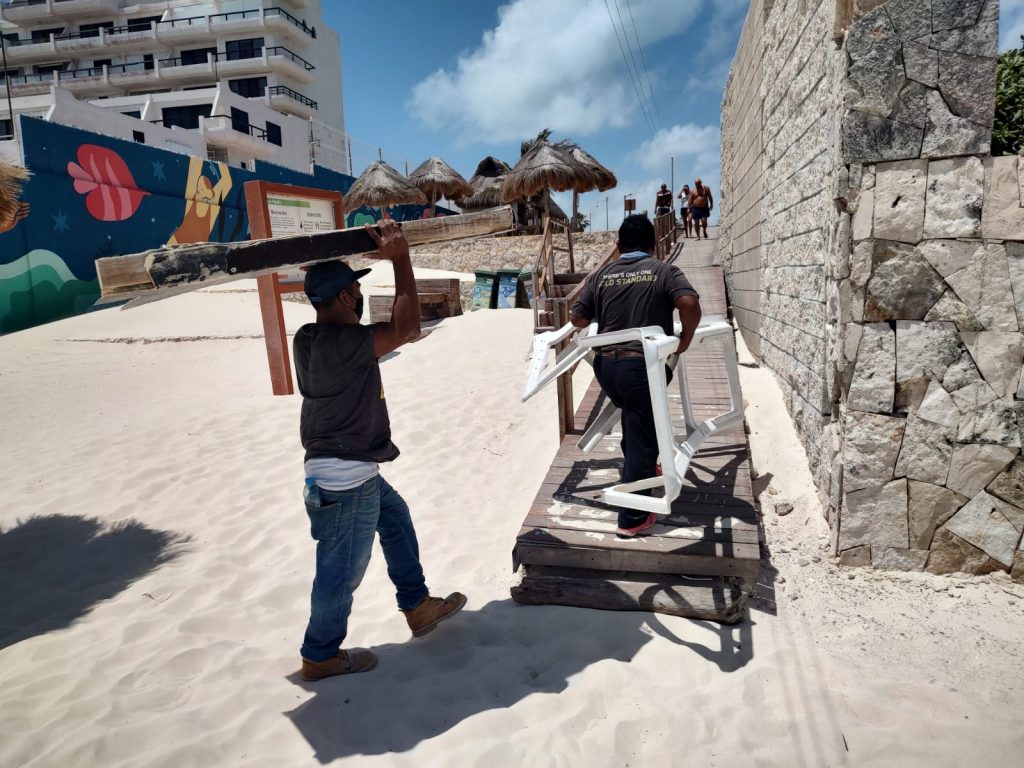 El operativo coordinado por personal de la FGE de Quintana Roo, tuvo la finalidad de retirar los camastros e inmuebles que operaban en la playa sin permisos e invadiendo zona federal