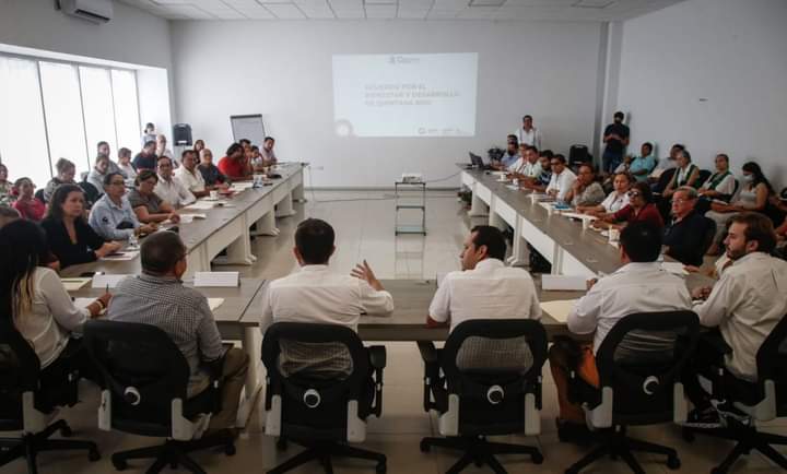 Cancún, Quintana Roo a 3 de noviembre de 2022.-Para garantizar un desarrollo económico compartido, sustentable y sostenible que genere mayor bienestar social para todas y todos, el titular de la Secretaría de Desarrollo Social (SEDESO) Pablo Bustamante, encabezó los trabajos para integrar con las voces ciudadanas el Eje 1 del Nuevo Acuerdo por el Bienestar y Desarrollo de Quintana Roo.