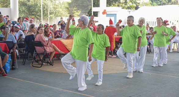 El festejo se llevó a cabo en el domo de la Estancia de Día del Club Nuevo Amanecer, en donde participaron socios de los clubes, iniciando este con el canto tradicional de la posada navideña a cargo del taller de guitarra, seguido de villancicos, la presentación de la forma 8 de Tai chi, presentación de Matices Navideños de Chi kung, Danza folclórica, Bailes Caribeños y activación física. y la exhibición de manualidades.
