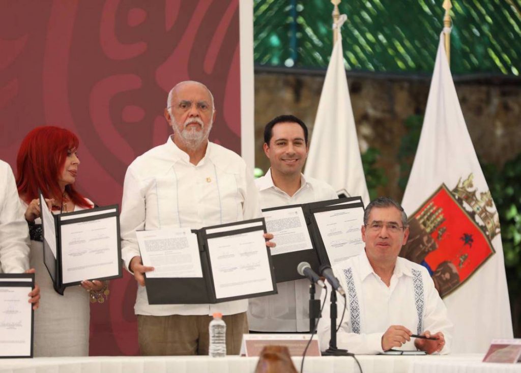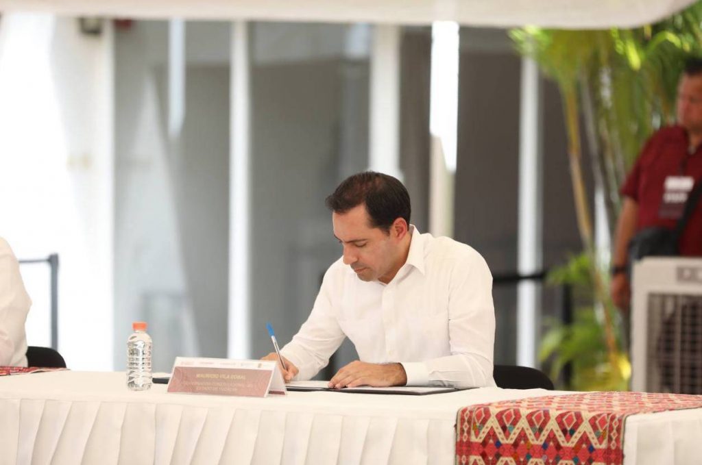 En un encuentro que encabezó el titular de la Secretaría de Gobernación (Segob), Adán Augusto López Hernández, Vila Dosal y los Gobernadores de Guanajuato, Diego Sinhue Rodríguez Vallejo; Michoacán, Alfredo Ramírez Bedolla; Nayarit, Miguel Ángel Navarro Quintero; Campeche, Layda Sansores San Román; Oaxaca, Salomón Jara Cruz; Quintana Roo, Mara Lezama Espinosa; Tabasco, Carlos Manuel Merino Campos; Veracruz, Cuitláhuac García Jiménez, y el coordinador Estratégico de Seguridad de Jalisco, Ricardo Sánchez Berumen, firmaron el documento que permitirá a Yucatán recibir recursos de la Federación por 195.2 millones de pesos.