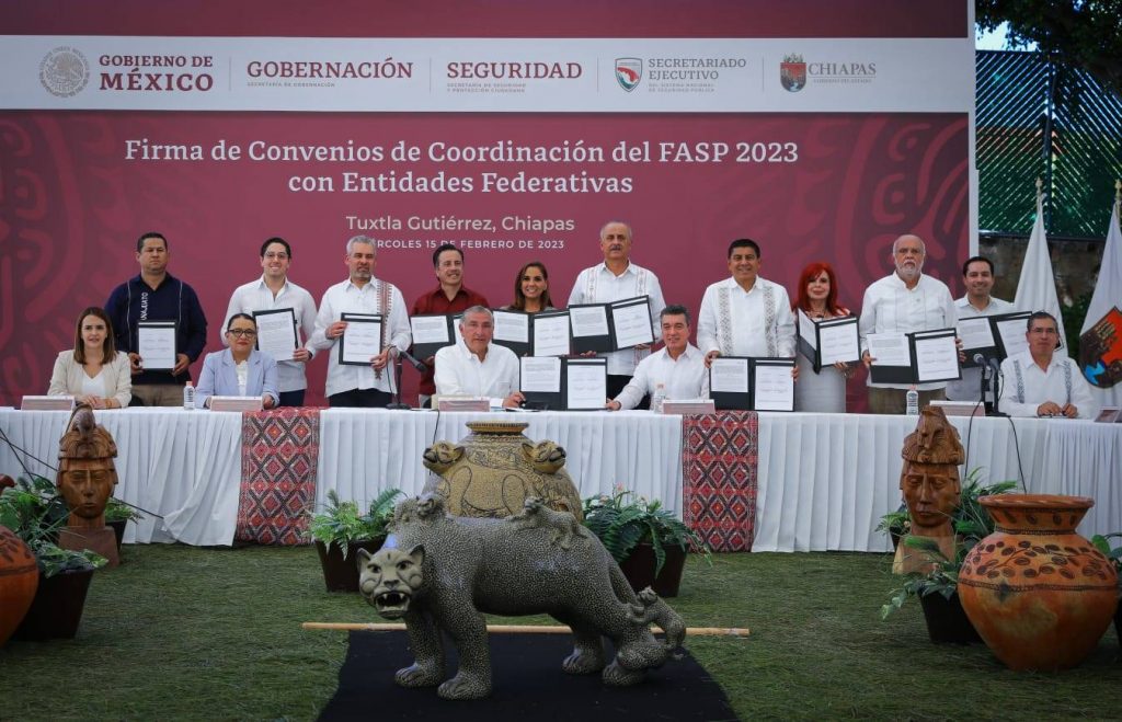 Tuxtla Gutiérrez, Chiapas, 15 de febrero de 2023.- Para fortalecer la paz social de todo el territorio estatal, el Gobernador Mauricio Vila Dosal asistió a la firma del convenio del Fondo de Aportaciones para la Seguridad Pública 2023 con entidades federativas, con lo que se contribuirá a seguir mantenimiento a Yucatán como uno de los estados más pacíficos del país.