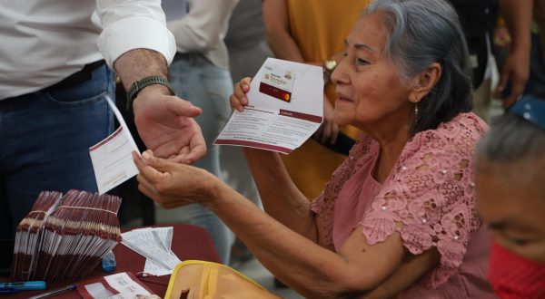 Algunas personas también recibirán su pago todavía en efectivo en las mesas de pago que la Secretaría de Bienestar instala para ello.