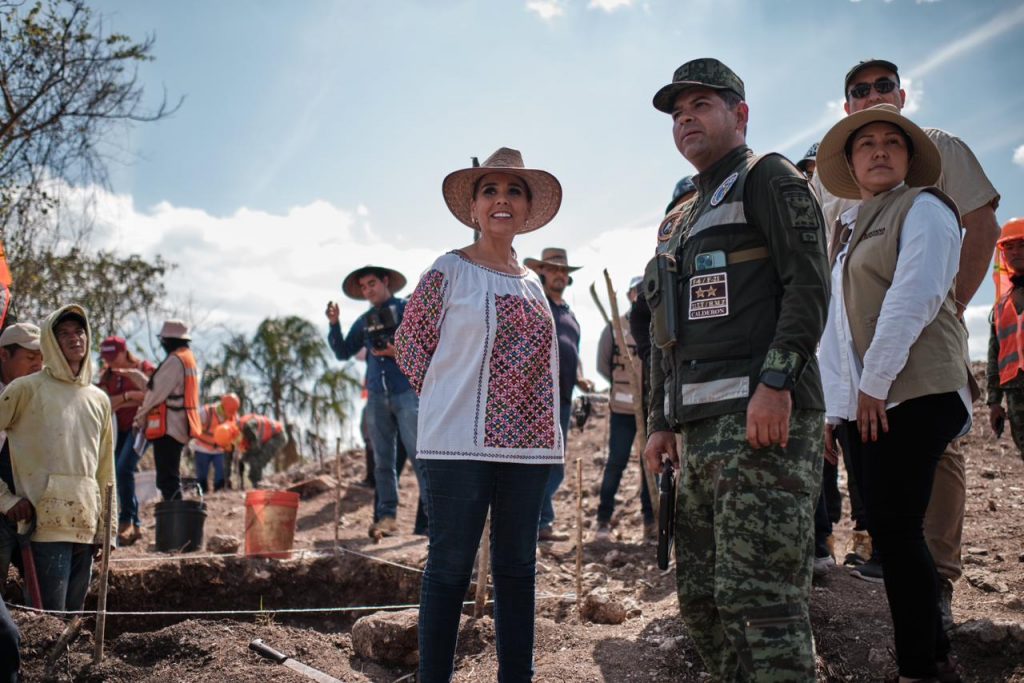 La gobernadora Mara Lezama Espinosa recorrió la zona acompañada de un equipo multidisciplinario que realiza acciones de salvamento arqueológico, en el que el 60 por ciento son mujeres especialistas y a quienes reconoció por la importante e histórica labor que realizan en este espacio.
