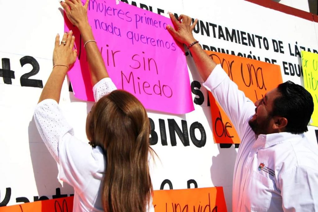 Al llegar al domo del centro las autoridades municipales y las personas que participaron, pegaron carteles con frases que remarcaron que este día no es festivo si no lucha para defender los derechos de las mujeres.
