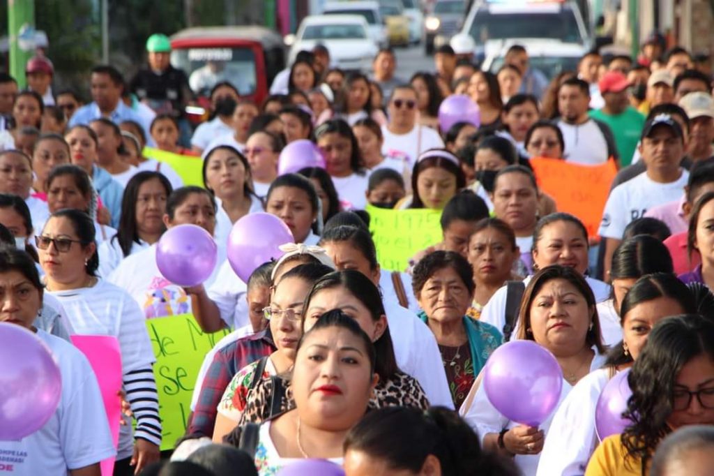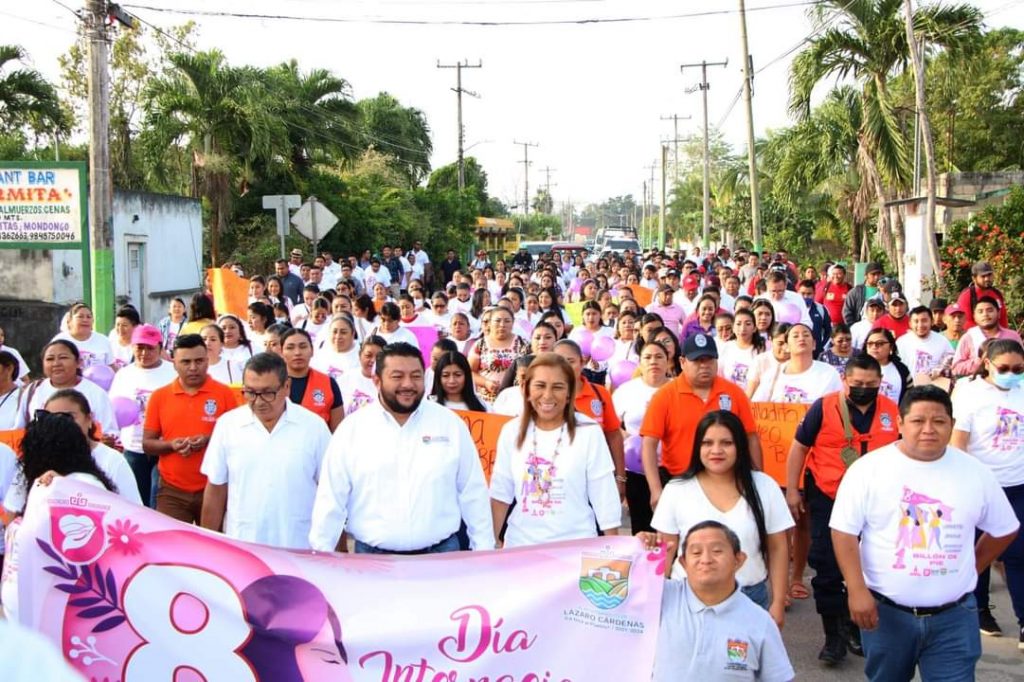 Lazaro Cárdenas, Quintana Roo 08 de marzo 2023.-El Ayuntamiento de Lázaro Cárdenas conmemoró está mañana el día internacional de la mujer con una marcha que encabezó el Presidente Municipal M.D. Orlando Emir Bellos Tun, acompañado de la Presidenta del DIF Sra Elsy Rubí Cruz de Bellos, misma que dió inicio en la Secundaria Técnica #4 hasta llegar al centro de la cabecera municipal, en donde participaron tanto mujeres como hombres como muestra de unión para luchar por los derechos de igualdad y la no violencia en las niñas y mujeres.