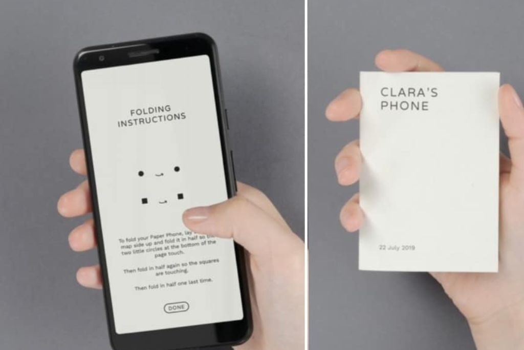 A través de la app ‘paper phone’ o ‘celular de papel’, se ofrece al usuario que utilice el celular como un resumen de datos importantes en un formato amigable para una versión impresa del dispositivo, el cual incluye mapas, contactos importantes, juegos cortos y lista de pendientes.
