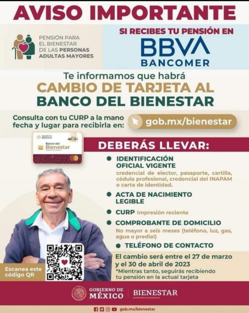 Es importante señalar que hasta el cambio, las personas seguirán recibiendo su pensión en la actual tarjeta.