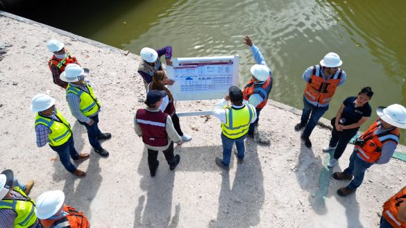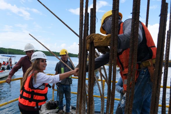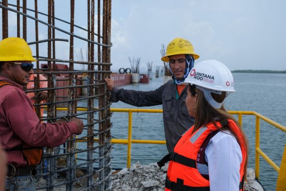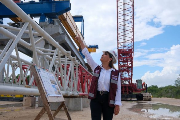 “Va a quedar como una obra extraordinaria, con gran tecnología, con 228 apoyos, un claro de acero en forma de arco para librar un cenote que se encontró en el cuerpo lagunar. Será un puente larguísimo, espectacular” precisó la Gobernadora.