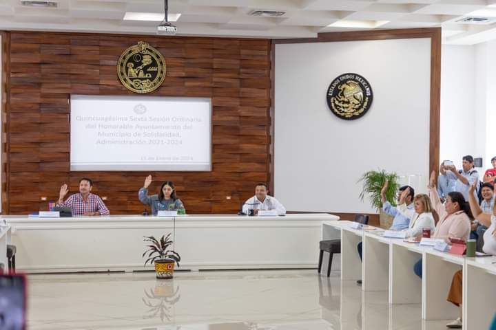 Playa del Carmen, Solidaridad, 11 de enero de 2024.- Durante la Quincuagésima Sexta Sesión Ordinaria de Cabildo del Ayuntamiento de Solidaridad, encabezado por la presidenta Lili Campos, se aprobó el uso del lema “2024 Año del 50 aniversario del Estado Libre y Soberano de Quintana Roo”, que se utilizará en papelería oficial, actos y eventos durante este año.