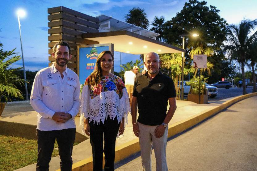 La titular del Ejecutivo supervisó que 42 paraderos estén mejor iluminados, dignos, más seguros para todas y todos, acompañada por el secretario de Turismo, Bernardo Cueto Riestra, y el titular del Fideicomiso para el Fortalecimiento de la Actividad Turística de Quintana Roo (FOATQROO), Ricardo Archundia.