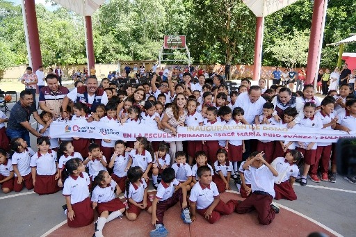 Solferino, Lázaro Cárdenas. Quintana Roo 26 de septiembre de 2025.- Más de 144 alumnas y alumnos de la Escuela Primaria “José María Pino Suárez” de esta comunidad estrenaron su nuevo domo en la inauguración encabezada por la gobernadora Mara Lezama Espinosa, y con el cual ahora cuentan con un espacio digno, seguro y adecuado para realizar actividades físicas, culturales y cívicas.