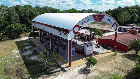 A nombre del alumnado, Santiago Hafid Quintal Betancourt, agradeció a Mara Lezama este domo que será de gran utilidad para los diversos eventos que se realizan en la escuela, ahora sí, protegidos del sol, la lluvia y otras inclemencias.