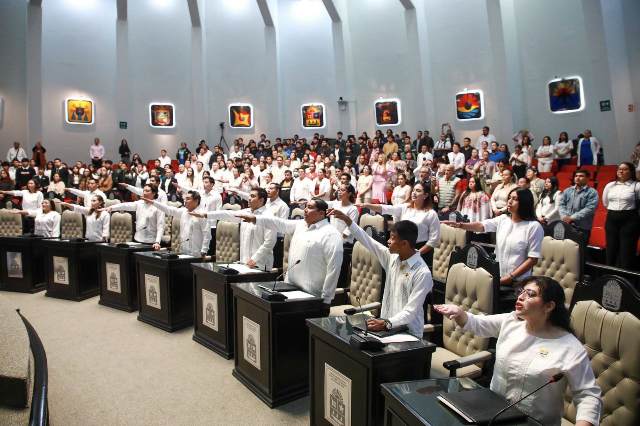 En este marco, el diputado Renán Sánchez Tajonar, presidente de la Junta de Gobierno y Coordinación Política de la XVIII Legislatura felicitó a las y los jóvenes por su compromiso y participación activa en la vida pública de la entidad.